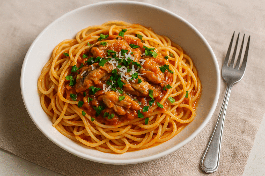 Så næste gang du tænker “jeg har kun en dåse makrel og lidt pasta”, så husk: det er alt, du behøver for at lave et måltid, der slår frysepizza med længder.